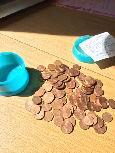 Toutes vos pièces de 10 centimes ont été transformées en Ariary, chaque billet de 10 000 Ariary (sur la photo) correspond à 2,50€ et donc à 25 repas. Chacune de vos pièces fait toute la différence, celle entre un enfant qui mangera aujourd'hui et un enfant qui ne mangera pas. C'est vraiment aussi simple, binaire et vital que cela.